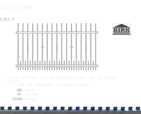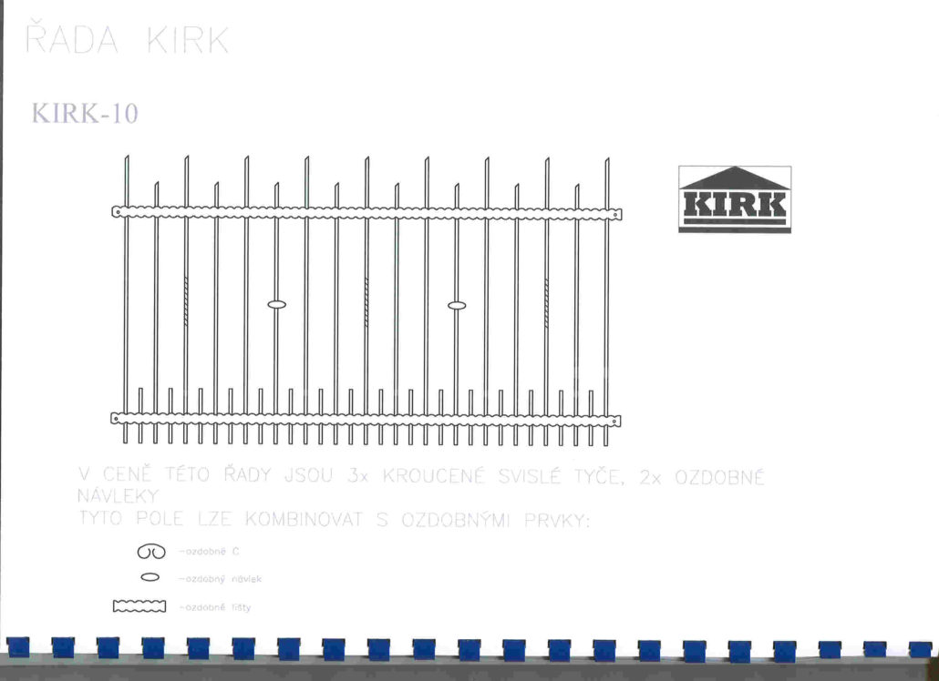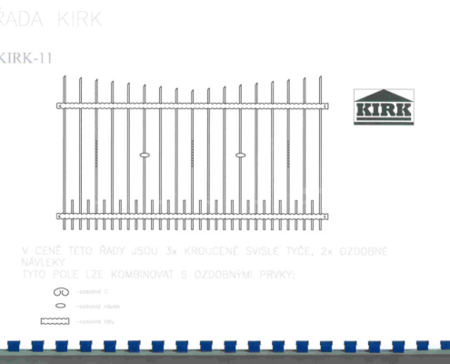 Kované plotové dílce jsou vyrobeny z čverhranné tyčoviny a nosné konstrukce z pásového železa a jaklových tyčí. Dílce provádíme v úpravě pozinkováním nebo nástřikem polyuretanovou barvou nebo KOMAXIT.