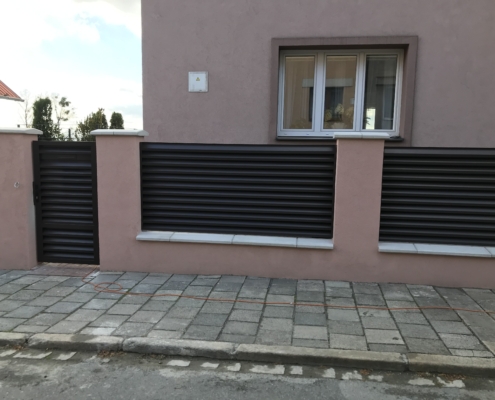 Lamelové plotové dílce jsou vyrobeny z pozinkovaných profilů a nosné konstrukce z jaklových tyčí. Dílce vyrábíme na míru v libovolné kombinaci profilů a roztečí, povrchová úprava nástřikem polyuretanovou barvou nebo KOMAXIT.