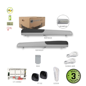 RAY42 KIT pro dvoukřídlou bránu do 4 m/kř., 2x RAY4024 pohon 24V, 120W, 2000N, 2x SUB-44WR, 1x LED24, 1x CT-14AB2, 1x RX4, 1 pár FT-32