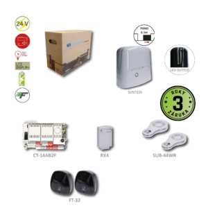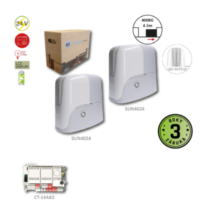 900KSUN5024FKR pro posuvnou bránu do 500 kg, 1x SUN5024F (24V, 300W, 23Nm), 1x CT-14AF, 1x RX4, 2x SUB44WR, 1 pár FT-22, magnetické koncové spínače