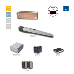 Zvýhodněná sada pro jednokřídlovou bránu do 5m / křídlo, 1x TO5024 (24V, 120W, 1800N), 1x MC824H, 1x ON2E, 1x OXIBD, 1 pár EPMB
