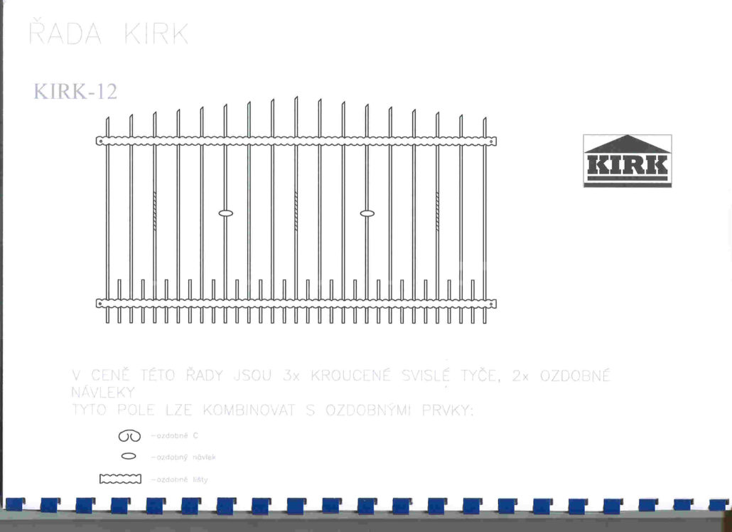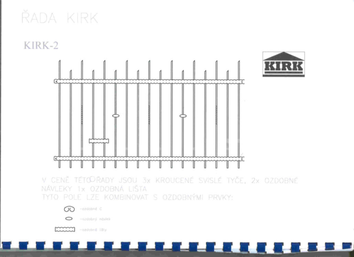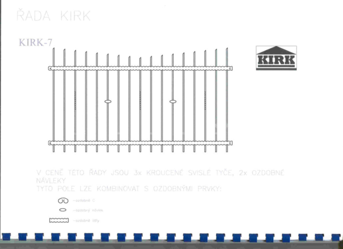 Kované plotové dílce jsou vyrobeny z čverhranné tyčoviny a nosné konstrukce z pásového železa a jaklových tyčí.